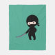 Tiny Angry Ninja on Dark Green Fleece Blanket