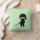 Cute but angry cartoon ninja dressed in black is holding a traditional Japanese katana sword.