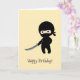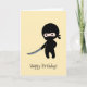 Cute but angry cartoon ninja dressed in black is holding a traditional Japanese katana sword.