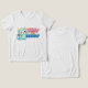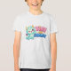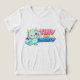 Adorable turquoise fluffy dragon with rosy cheeks and playful pink lettering, ideal for apparel and cheerful, whimsical outfits.