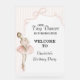 A charming acrylic welcome party sign featuring soft watercolor pink stripes, coquette bows, and an adorable ballerina. Perfect for a Tiny Dancer birthday celebration, this elegant sign sets the tone for a sweet, ballet-inspired party from the moment guests arrive.