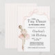 A sweet and elegant watercolor birthday invitation featuring soft pink stripes, a graceful arch, a coquette bow, and an adorable ballerina illustration. Perfect for a little one’s “Our Tiny Dancer” celebration, this design blends simplicity and charm for a timeless, ballet-inspired party theme.