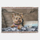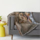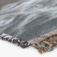 A quality printed throw has its advantages. This is a much finer weave throw than its loopier cousins, and though lighter, it is worth the investment for custom room accessorizing. The back is much prettier than the typical brown, and the fringe on the long sides very vivid, the selvage nicely done. Before photographing, I washed the throw in cold water, delicate, with a thicker woven throw the same size. On tumble dry low, this throw was dry in half the time as the other. This is a very practical quality if you use throws for furniture covers or to wrap up in frequently. The sleekness of the fabric makes it a great layer for accenting or protecting without the feeling of sitting on too much stuff. Perfect for napping or when you feel a light chill coming on. The color printing is beautiful and on this fabric, matched the design and color of my Photoshop image. This is an advantage for blending room fabrics and colors. The fringe on the short sides prints the colors from the design image and therefore varies from the side fringe. I streaked a white fractal line through the plaid pattern to give the illusion of weaving. This printed as crisp as an illusory thread, and put some white in the short side fringe, showing another advantage of print vs loomed- for artistic purposes, line lines, detail, and color integrity can be planned and preserved. My loomed throws have color limitations and more of a needlepoint texture. Print throws reproduce an exact image. The throw felt a little stiff straight out of the package, but this went away in the first delicate wash. Of course I searched the wash water for ink or bleeding and there was none.