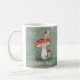 Tiny fairy perched on top of mushroom and glowing coffee mug