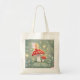 Tiny fairy perched on top of mushroom and glowing tote bag