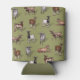 This can cooler features a herd of tiny goats in all different colours on a muted green background.