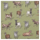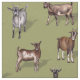 This fabric has a herd of tiny goats in all different colours on a muted green background.