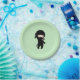 Happy cartoon ninja dressed in black with arm raised in waving. Traditional Japanese sword katana can be seen attached over his shoulder.