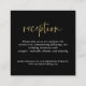A TINY MINI SIZE 2.5" square enclosure and simple Black and Gold design for your Wedding Reception Details. Set typography for the main heading Reception complementing the rest of the text which you can easily personalise.