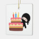 Tiny Ninja Behind Birthday Cake Ceramic Ornament