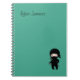 Cute cartoon ninja dressed in black is holding a throwing star. Traditional Japanese sword katana can be seen attached over his shoulder.