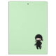 Cute cartoon ninja dressed in black is holding a throwing star. Traditional Japanese sword katana can be seen attached over his shoulder.