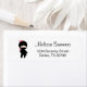 Cute cartoon ninja girl is dressed all in black but for a pink bow on top of her head mask. Traditional Japanese sword katana can be seen attached over her shoulder, it’s handle also coloured pink.