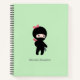 Tiny Ninja Girl Custom Name on Green Notebook