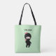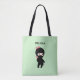 Tiny Ninja Girl Custom Name on Green Tote Bag