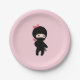 Cute cartoon ninja girl is dressed all in black but for a pink bow on top of her head mask. Traditional Japanese sword katana can be seen attached over her shoulder, it’s handle also coloured pink.
