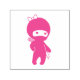 Cute cartoon ninja girl is dressed all in black but for a small bow on top of her head mask. Traditional Japanese sword katana can be seen attached over her shoulder.