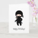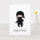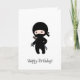 Cute cartoon ninja dressed in black is holding a throwing star. Traditional Japanese sword katana can be seen attached over his shoulder.