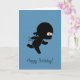 Cute little ninja dressed in black is running while holding a throwing star. Customisable text.
