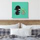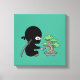 Tiny Ninja Watering Bonsai Tree on Green Canvas Print