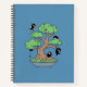 Tiny Ninjas in Bonsai Tree on Blue Notebook