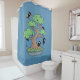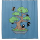 Tiny Ninjas in Bonsai Tree on Blue Shower Curtain