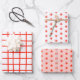 Tiny Scribbled Daisies Grid Whimsical Red Pink Set Wrapping Paper Sheet