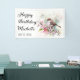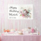 Women's birthday party banner with the painting of a cute little sparrow sitting among blossoms in the branches of a cherry tree. Personalised with the name of the guest of honour. Contact me for assistance with your customisations or to request additional matching or coordinating Zazzle products for your celebration.
