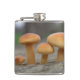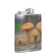 This awesome flask features a beautifully detailed photograph of 4 small yellow toadstools emerging from a log in a park. The background is blurred and the fungi are photographed level so you see the world from their perspective.