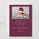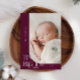 Elegant and modern Christmas theme birth announcement card featuring a typography text that says "tiny toes big joy." This is a birth announcement card for the holiday seasons! Add your photos, birth stats, and a message! The background is cranberry.