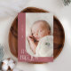 Elegant and modern Christmas theme birth announcement card featuring a typography text that says "tiny toes big joy." This is a birth announcement card for the holiday seasons! Add your photos, birth stats, and a message! The background is pink.