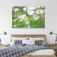 Wonderful tiny white floral canvas art print. Colors are bright green, white and gray.