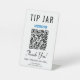 Simple modern tip jar table top pedestal sign for your business with a Venmo QR code for customers to scan for payments. Add your QR code, business name, phone number and street address in simple typography.