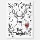 A funny and cheerful Christmas holiday design showcases an outline of a deer surrounded by snowflakes and fern branches. Beside the branches sits a glass of red wine. The handwritten text reads, "Tipsy and bright." This design is featured on a variety of products, making it a perfect gift for wine lovers.