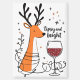 A funny and cheerful Christmas holiday design showcases a reindeer wrapped in festive lights, holding a glass of red wine, surrounded by colourful stars. The handwritten text says, "Tipsy and Bright." This delightful design is available on a variety of products, making it a perfect gift for wine lovers.