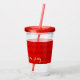Custom, personalised, elegant faux gold typography script name / custom text, modern cool chic stylish geometric trendy christmas red zig zag pattern background, classy, monogrammed, lightweight, durable, portable, sweat resistant double-wall construction, BPA-free acrylic tumbler. Simply type in your name / family name / couple's names (bride & groom / husband & wife) or your wishes Merry Christmas! / Happy Holidays!, to customise. Makes a great gift for christmas wedding, birthday, thanksgiving, christmas, holidays, and more, for your loved ones, girlfriend, boyfriend, mum, dad, bride, groom, bridesmaid, maid of honour, groomsmen, newlyweds, hubby & wifey, bff, friends and family.