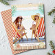 'Tis The Sea-sun Tropical Beach Summer Christmas Cards Foil Holiday Cards features your favourite photo surrounded by a fun beach themed frame of flip flops, palm leaves and flowers with a slightly retro vintage vibe with real foil accents. Personalise the fun modern hand lettered script typography by editing the text in the text box provided. PHOTO TIP: centre your photo prior to uploading to Zazzle. Designed by ©Evco Studio www.zazzle.com/store/evcostudio