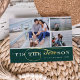 Cute nautical theme holiday card features three of your favourite photos in a collage layout, with "'tis the SEAson" in white and gold foil lettering on dark forest green.