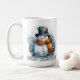 This holiday coffee mug features a charming illustration of a little snowman trying to stay warm and cozy in the Winter snow. You are welcome to change all the available options as you'd like.