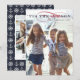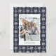 Cute nautical theme holiday card features your favourite vertical or portrait orientated photo in full bleed, with "'tis the SEAson" overlaid at the top in navy and red lettering. Add an additional photo and message to the back, on a background pattern of anchors and ship's wheels in navy and white.