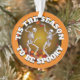 Tis the season to be spooky and these happy skeletons are dancing in fall leaves.