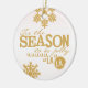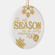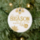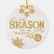 Pretty Christmas holiday ceramic ornament with our Tis the Season design featuring golden typography text that reads Tis the Season to be Jolly Fa la la la la la and has a gold snowflakes. The back has decorated text that reads Merry Christmas and an area to customise with your family name, first names, and current year!