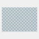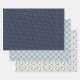 Christmas pattern wrapping paper. Features three separate designs, white 'Tis the Season modern script word art pattern on blue, rustic plaid in shades of blue and winter foliage and holly berry.
