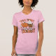 This fun retro t-shirt design is a throw back to the 70s and features a pumpkin and coffee drink mascot holding up the peace sign with text that says "Tis the Season". Colours include pink, orange and brown. Perfect for Pumpkin Spice season this fall.