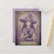 It’s that spooky time of the year again! This purple postcard features an illustration of a purple witch standing in the moonlight, holding a black cat, against an eerie purple background.