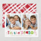 A super fun card design featuring the quote "TIS THE SEASON" in colorful type and cute cross hatch pattern on the backside. Maximum area to display your beautiful family too!