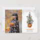 Illustration of a halloween tree in a jack o lantern pot. Tree is decorated with pumpkins, bats, potions, candles, and topped with a ghost. Text says, "Tis the season to be spooky" Personalise with your photo at left.