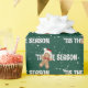 White 'TIS THE SEASON text with gingerbread men and snowflakes on a green background.