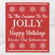 Perfect holiday season gift wine label that reads "Tis The Season To Be Jolly Happy Holidays From _______" in classic colours of red and white with traditional snowflake design that is meant to be customised with your last name