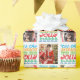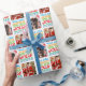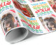 Fun holiday Christmas text 'tis the season to be jolly wrapping gift paper in white, blue, red, green, and yellow. Personalise with two of your own photos. Designed by Sarah Trett.